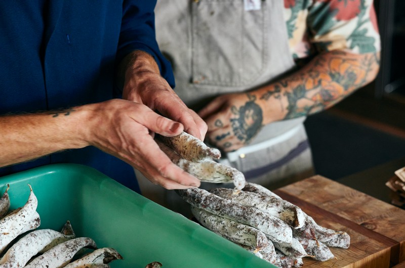 Permettre aux gens de partager d'authentiques moments de plaisir à table, telle est la mission des chefs fermiers de la Ferme des Quatre-Temps. Ces produits d'exception proviennent de toute leur passion à créer des charcuteries de qualité supérieure fabriquées à la main, dans le respect de l'environnement et d'une éthique sans compromis dans l'élevage et la transformation animale.